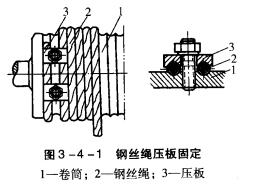 (1)卷筒上鋼絲繩尾端的固定裝置,應(yīng)有防松和自緊的性能。對鋼絲繩尾端的固