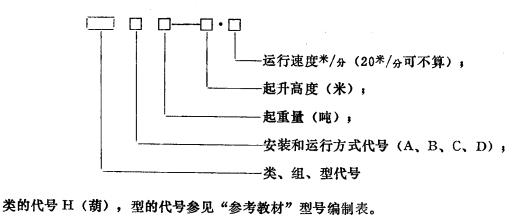 如HCA5-6型電動葫蘆,表示起重量5噸,起升高度6米的固定式常速鋼絲繩電動葫蘆葫蘆。